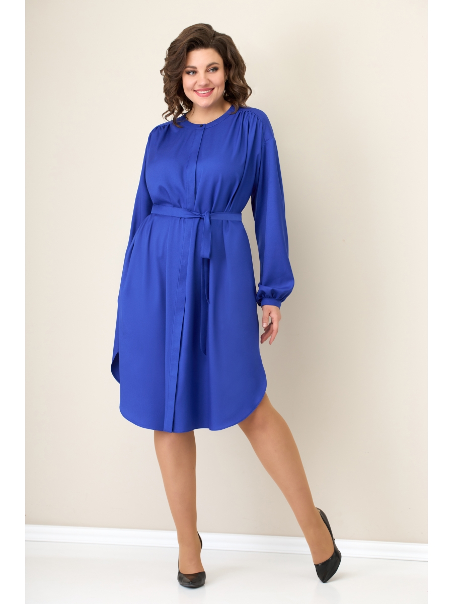 Платье из струящегося текстиля, прямого свободного силуэта, с потайной застежкой на пуговицы, с втачным спущенным рукавом на манжете.