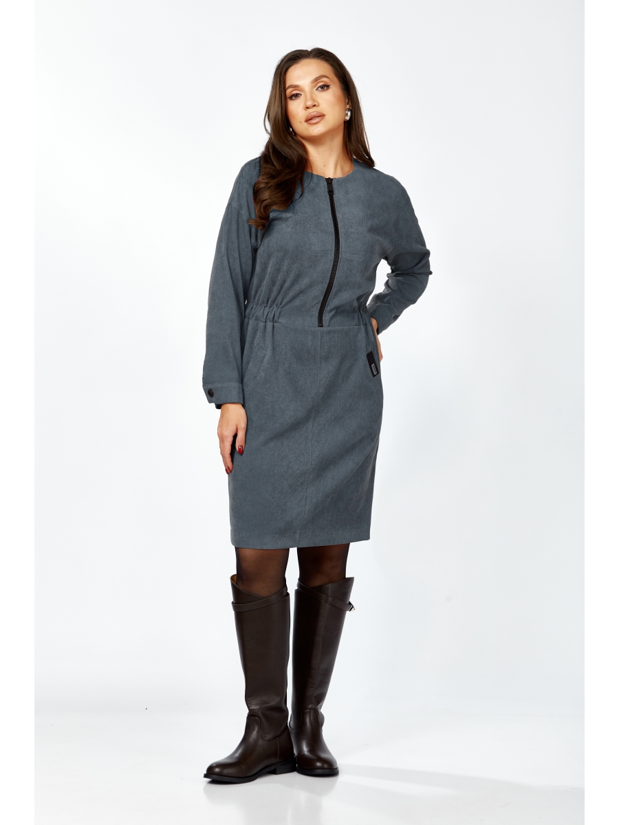 Оформить заказ →Платье полуприлегающего силуэта из мягкой, комфортной штруксовой ткани. Рукав спущенный, длинный, на манжете с застёжкой на 1 петлю и 1 пуговицу, разрезом. Горловина круглая, застёжка на тесьму-молнию контрастного цвета до талии. По талии подрез, по бокам спереди вставлена резинка, верхняя часть платья имитирует бомбер. Карманы - наклонные листочки, расположены на уровне бёдер по переднему полотнищу юбки, на левой листочке настрочена нашивка контрастного цвета. Перед платья с декоративными подрезами и отстрочкой. Спинка отрезная по талии, на резинке, со средним швом и разрезом по низу.
