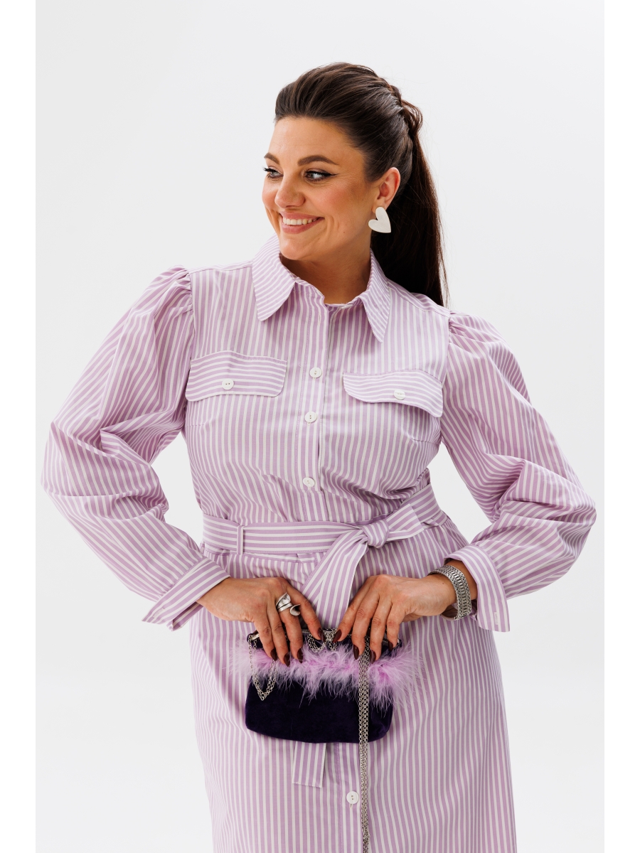 Из премиального хлопка. Красивые линии, втачной ,длинный рукав слегка присборен. Воротничок отложной на стойке. Застежка на петли и пуговицы. Платье дополнено широким поясом из основной ткани. Длина ниже колена.