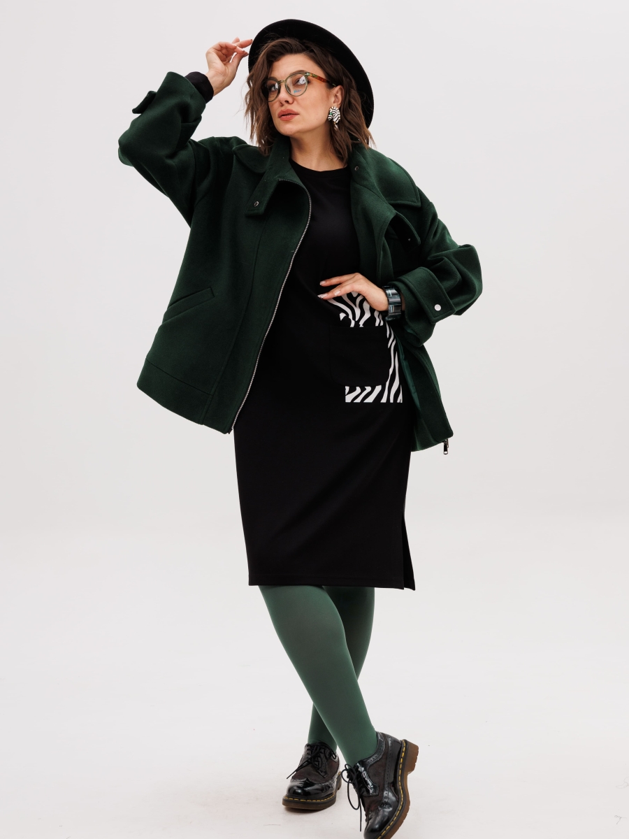 Полуприлегающий силуэт платья скрывает недостатки и дарит ощущение комфорта. Втачной длинный рукав и круглый вырез горловины делают это платье классическим, однако изюминка этого платья — принт с зеброй и разрез способны выделить вас.