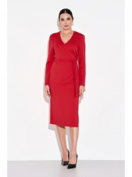 Женское платье на запах длины миди полуприлегающего силуэта со втачными рукавами и V-образным вырезом горловины. Изделие выполнено из мягкого высококачественного полотна с содержанием вискозы. Ткань не скатывается и не деформируется при правильном уходе.