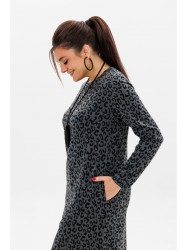 Особенность модели — стильная шлица на кнопках, расположенная сбоку, которая не только добавляет оригинальности, но и позволяет варьировать образ: расстегнув несколько кнопок, можно создать лёгкий, игривый акцент. В боковых швах предусмотрены карманы, что делает платье ещё более практичным и удобным.