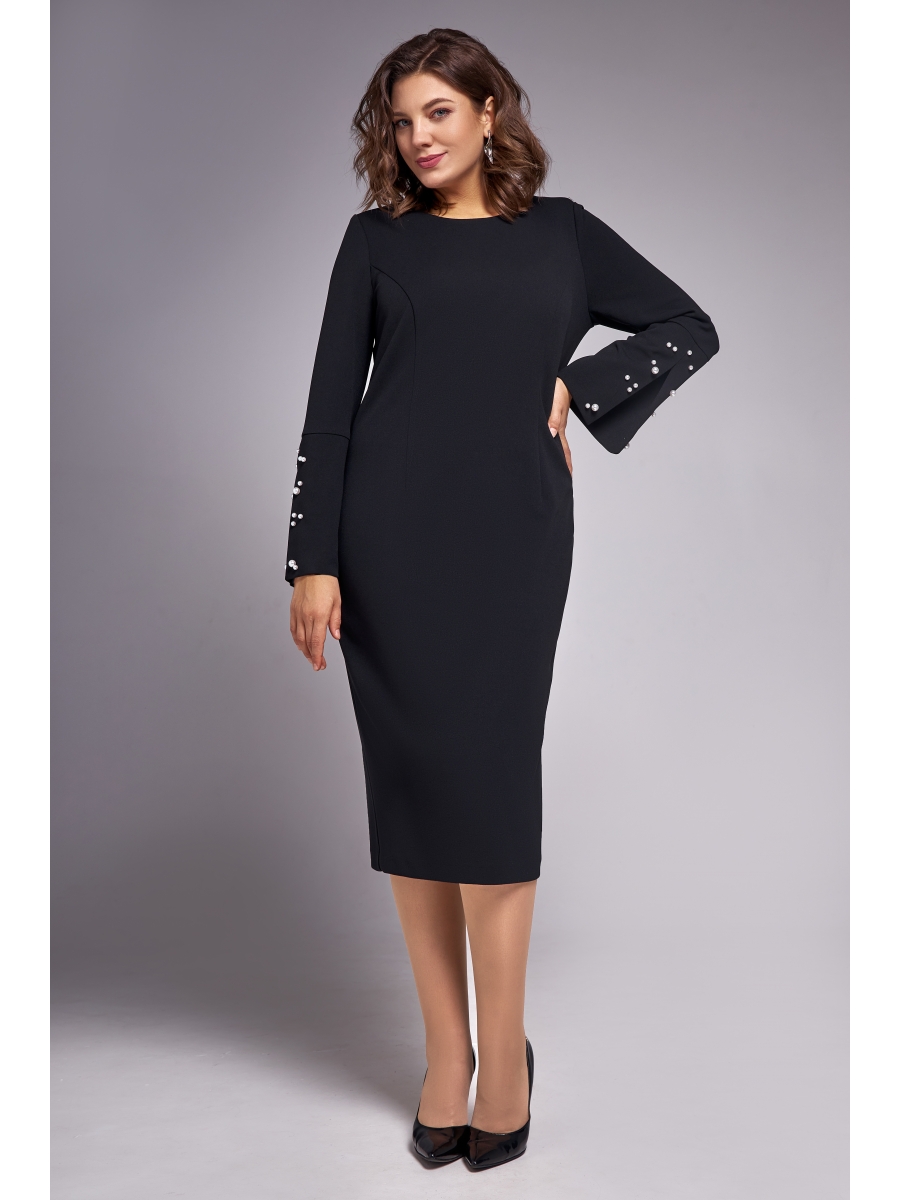 Оформить заказ →Платье женское полуприлегающего силуэта, по спинке застежка-молния и разрез; рукава втачные, по низу рукавов притачная манжета с разрезом и декором из бусин - жемчуга.