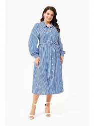 Платье-рубашка классического кроя выполнена из натуральной легкой ткани (вискоза 100%). Платье свободного силуэта немного расширено к низу, рукава втачные с мягкими складками по верху и небольшой сборкой на манжете по низу рукавов, воротник рубашечный, застежка по переду на петли и пуговицы, в боковых швах карманы. В комлект входит сьемный пояс из основной ткани.