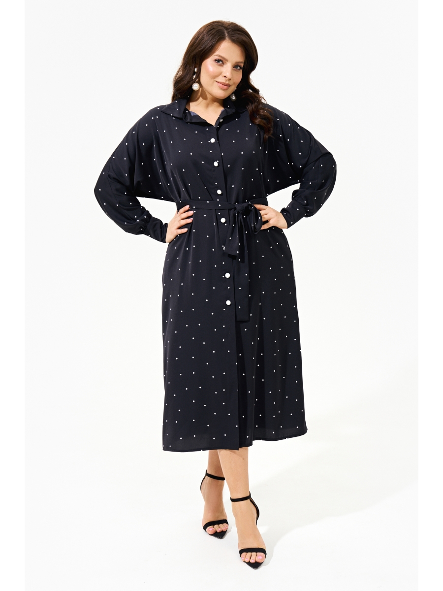 Женское платье-рубашка полуприлегающнго силуэта с цельнокроенными рукавами и акцентной складкой по линии плеча; по низу манжета со сборкой, что делает рукава более пышными; воротник рубашечный; застежка по переду на петли и пуговицы.