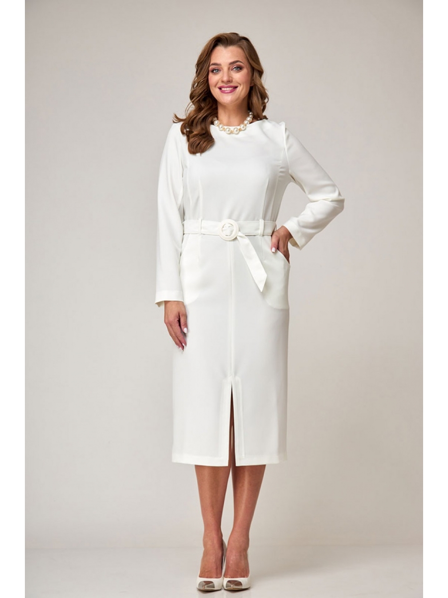 Очень элегантное, нарядное, деловое платье, отрезное по талии, с поясом на пряжке из этой же ткани. Рукав двухшовный втачной. По нижней части платья 2 функциональных кармана и разрез внизу. Платье сзади на молнии 50 см.