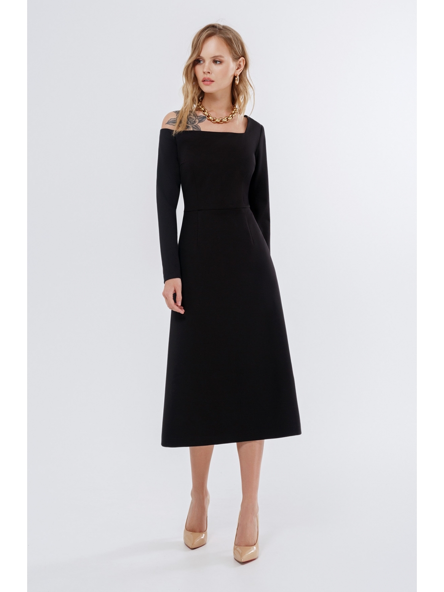 Оформить заказ →Асимметричное платье длины миди из плотного трикотажа. Детали: прилегающий силуэт, отрезная линия талии, нагрудные и талиевые вытачки, рукава длинные, по низу рукавов застежка на потайную молнию, потайная застежка-молния по спинке.