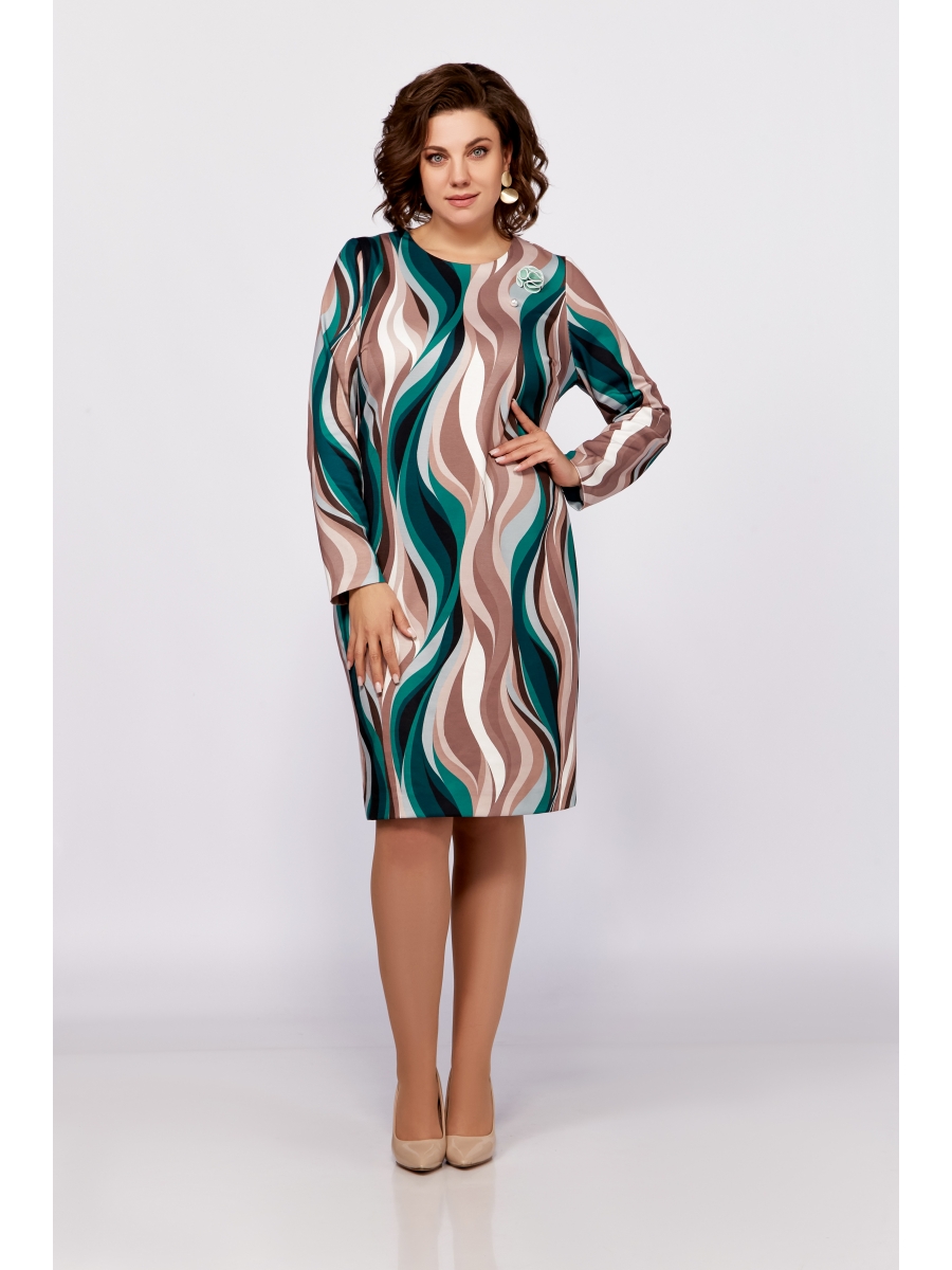 Платье из мягкого турецкого трикотажа полуприлегающего силуэта длиной до колена. Полочка с нагрудными вытачками, по спинке талиевые выточки, средний шов с застёжкой на потайную тесьму-молнию и шлица. Горловина округлая, рукав одношовный втачной, длинный.