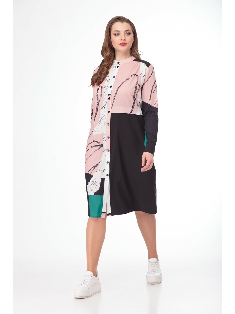 Элегантное платье-рубашка из легкой принтованной ткани в комбинации с однотонной.