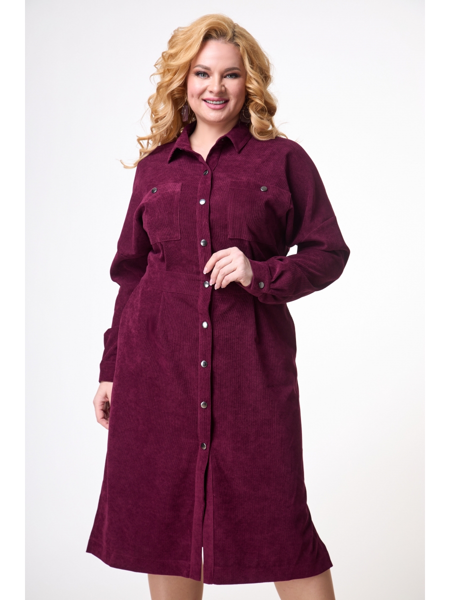 Вельветовое платье миди полуприлегающего силуэта – комфортная модель для каждого дня! Платье с накладными нагрудными карманами, втачным поясом. На нижней части переда оформлены боковые наклонные карманы. Спинка с резинкой по талии, накладными карманами на нижних частях. Застежка центральная на притачную планку, на кнопках.