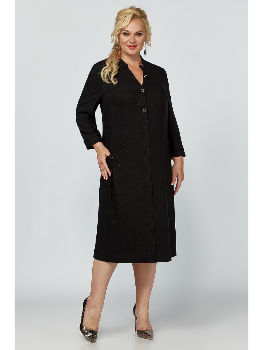 Хотите выглядеть стильно и элегантно в любое время года? Тогда это платье из плательной ткани с небольшим блеском идеально подойдет для вашего гардероба! Этот стильный наряд имеет рукав с манжетом и красивой стоечкой, которая добавляет ему элегантности и подчеркивает декольте. Платье с планкой и застежкой на пуговицы, прямого силуэта слегка расширенного к низу выглядит дорого и стильно. Слегка расклешенный низ подчеркивает красивые ноги с каждым шагом, а карман на правой полочке делает  платье более удобным и функциональным. Платье длинной  миди  выполнено из ткани, позволяющей коже дышать. Это шикарное, брендовое платье будет незаменимой вещью в гардеробе каждой девушки, которая ценит моду и качество