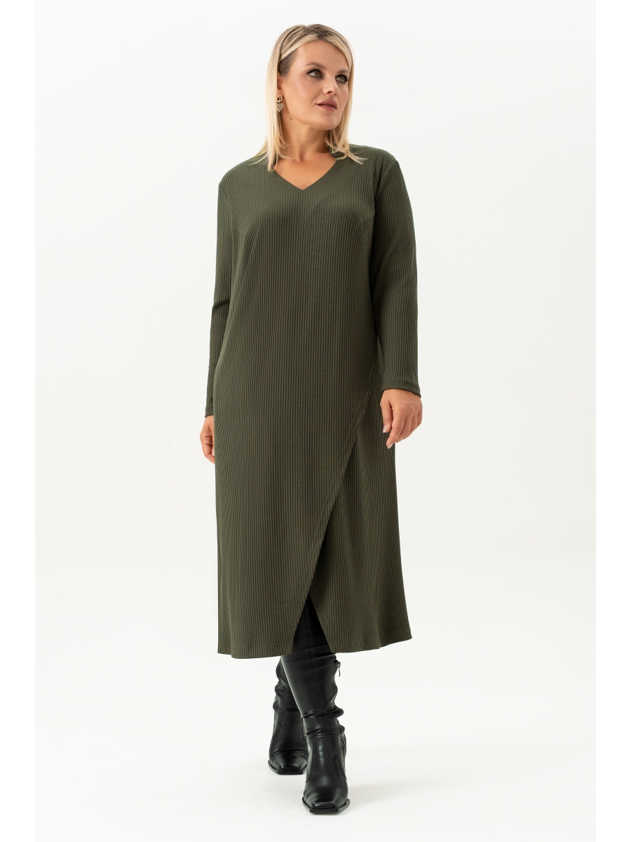 Представляем Вашему вниманию элегантное и стильное платье из трикотажного полотна лапша длины миди в безупречном  цвете хаки — идеальное решение для современных женщин, которые ценят комфорт и стиль. Это платье станет не просто частью вашего гардероба, а настоящим акцентом вашего образа. Воротник – стойка   добавляет нотку утонченности и делает образ более завершенным. Рукав втачной, длинный . По переду обработан разрез – запах. Этот элемент позволит вам создавать как повседневные, так и более формальные луки, подчеркивая вашу индивидуальность. Длина миди: идеально подходит для любого сезона и события. Вы можете носить его как в теплую погоду, так и в прохладные дни, сочетая с вашим любимым жакетом или кардиганом. Мягкая и приятная на ощупь ткань заботится о вашем комфорте в течение всего дня, позволяя вам чувствовать себя великолепно, не зависимо от обстоятельств. Стиль и универсальность: это платье легко комбинируется с различными аксессуарами и обувью, позволяя вам создавать множество уникальных образов. Будьте то деловая встреча, вечерняя прогулка или уютная встреча с друзьями — платье подходит ко всему! Легкость ухода: материал не требует особого ухода, что делает его идеальным выбором для активных женщин, ценящих свое время. Стильный фасон этого платья поднимет вам настроение и подарит уверенность в любой ситуации.