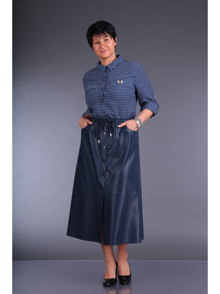 Платье женское комбинированное из текстильной жатой ткани слабой растяжимости и искусственной кожи.