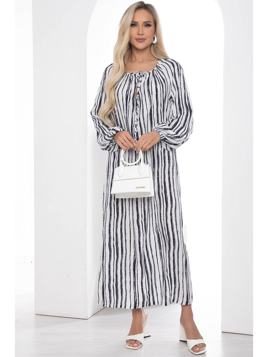 Это прекрасное платье поможет вам выглядеть стильно и элегантно в любой ситуации. Изготовленное из натурального и дышащего материала, этот женский повседневный наряд идеально подходит для лета. Легкое платье в стиле "бохо" с длинными рукавами на резинке. Свободный крой платья больших размеров обеспечивает комфорт и свободу движений. Благодаря своему универсальному дизайну, платье подходит как для повседневного ношения, так и для особых случаев, включая вечерние мероприятия и торжества.
