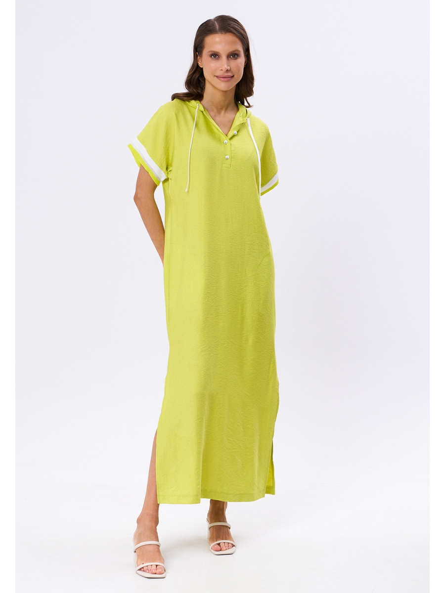 Оформить заказ →Свободное, прямое платье с капюшоном. Спущенный рукав отделан эластичным довязом в полоску. По переду застёжка в виде планки с пуговицами. В боковых швах карманы и разрезы.