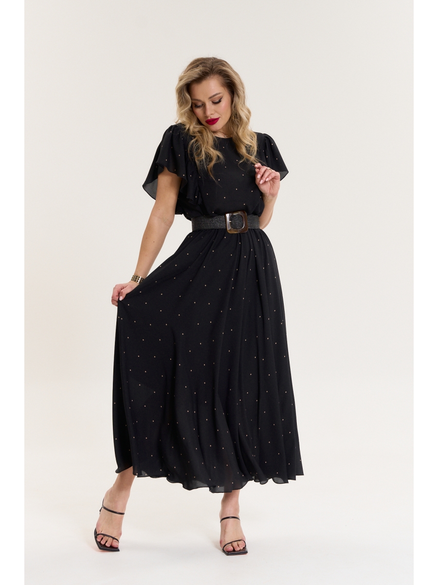 Оформить заказ →Элегантное платье женское из шифоновой ткани, отрезное по линии талии, на резинке. По полочке и спинке идут вертикальные подрезы с воланами. К платью идет съемный пояс. Юбка фасона "солнце". Юбка на подкладке. Съемный пояс в комплекте.
