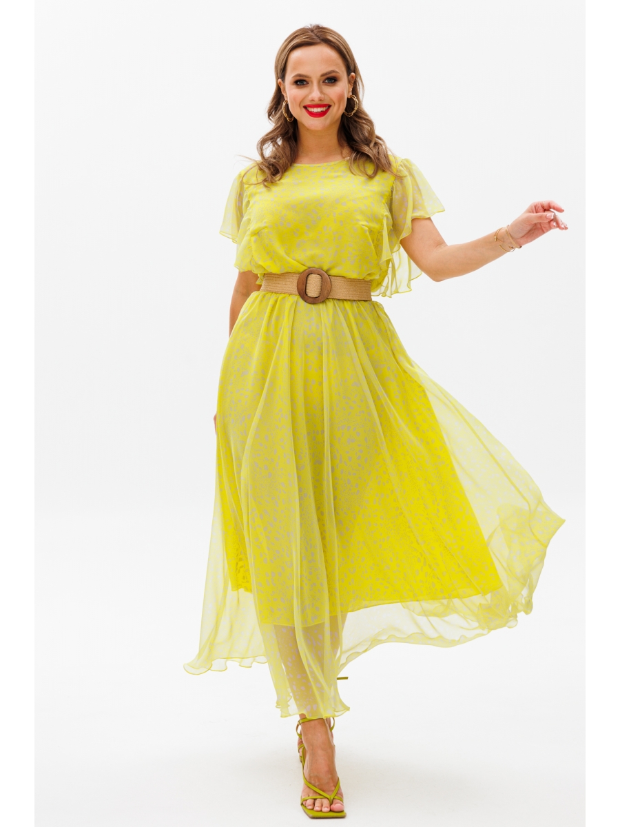 Оформить заказ →Элегантное платье женское из шифоновой ткани, отрезное по линии талии, на резинке. По полочке и спинке идут вертикальные подрезы с воланами. Полочка и спинка на подкладке. К платью идет съемный пояс. Юбка фасона "солнце". Юбка на подкладке. Съемный пояс в комплекте.