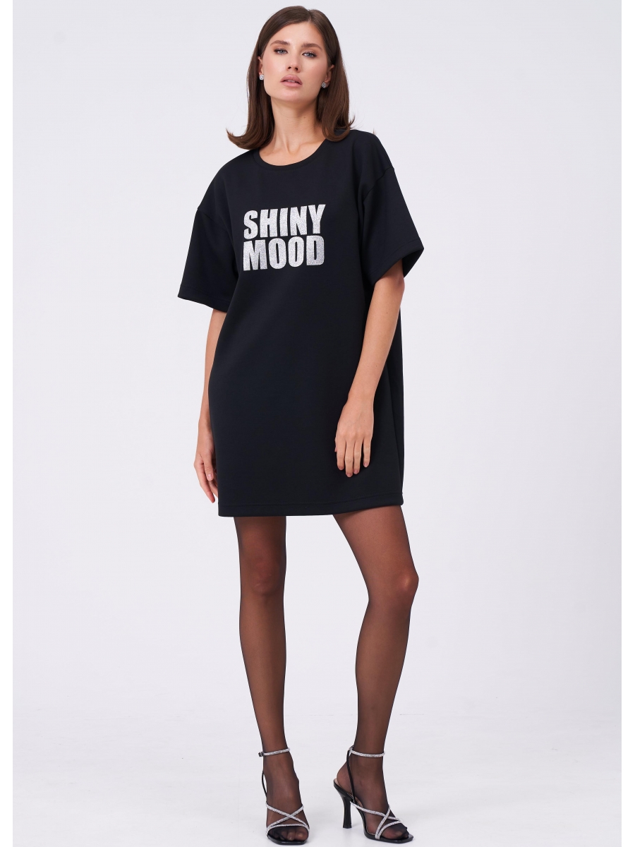 Оформить заказ →Платье-футболка из мягкого трикотажа с ярким, блестящим принтом «shiny mood» (блестящее настроение). Платье прямого силуэта со спущенным рукавом.