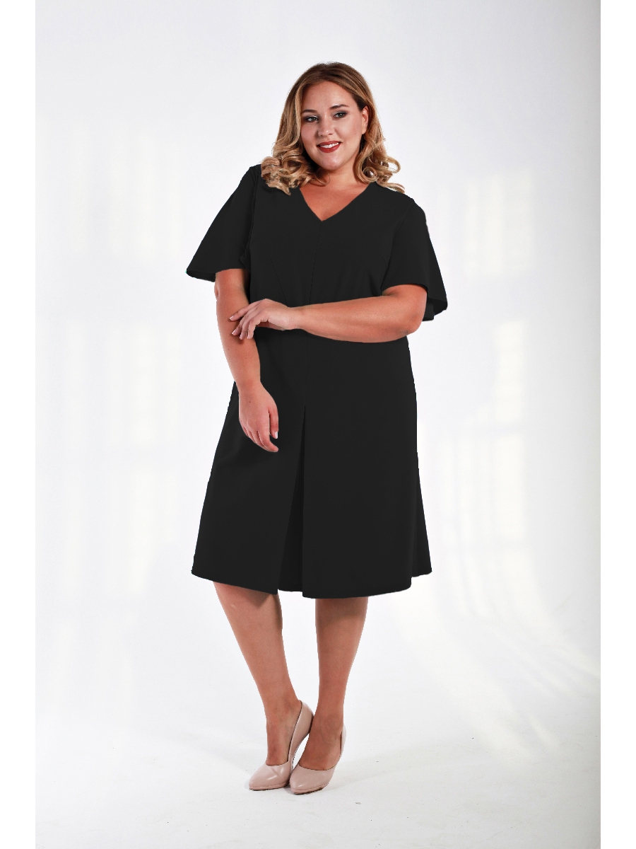 Оригинальное платье из крепа с эластаном. По линии талии фигурная линия подреза. Рукав "крылышко" втачивается в рельефный шов верхней части переда, проходит через линию плеча и заканчивается на спинке углом. Нижняя часть платья трапециевидного силуэта со встречной складкой по центру переда.