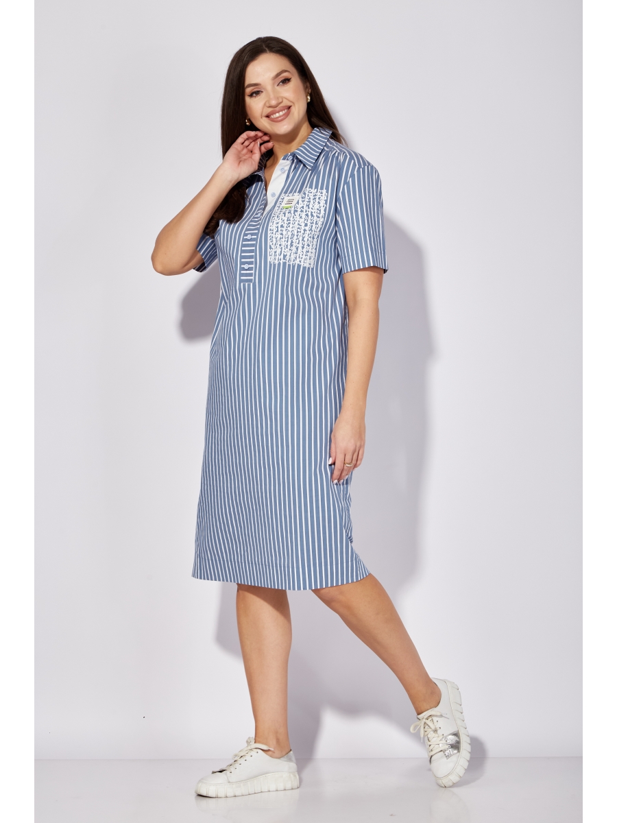 Оформить заказ →Платье женское, прямого силуэта с коротким рукавом. Рукав со спущенной линией плеча. Воротник рубашейчный, на стойке. Застежка до линии талии, с отрезной планкой на петли и пуговицы. Из под кокеток переда и спинки-сборка. По боку платья, шлица. Перед задекорирован принтом с акцентной нашивкой.