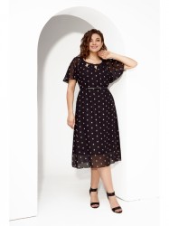 Платье женское из легкой шифоновой ткани на трикотажной подкладке. Платье А- силуэта. Рукава реглан, по горловине декоративная завязка из основной ткани. В комплекте съемный пояс.