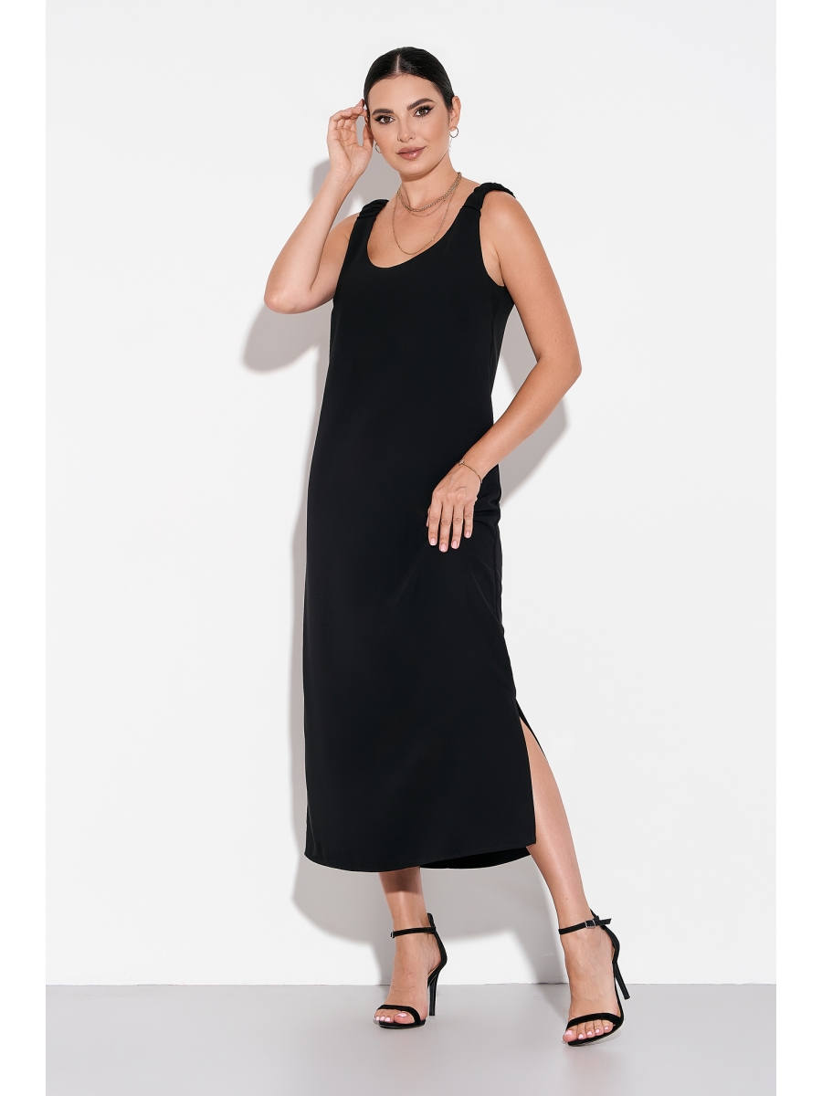 Оформить заказ →Женское платье миди свободного силуэта на широких бретелях с резинками и разрезом по боковому шву выполнено из мягкой непросвечивающейся ткани.