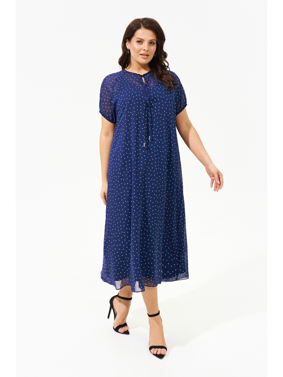 Платье женское А-силуэта выполнено из шифона с рукавами реглан и декоративной капелькой; по переду функциональные завязки ,что позволяет регулировать ширину горловины. Изделие дополнено платьем-комбинацией из легкого креп-шифона на регулируемых бретелях.