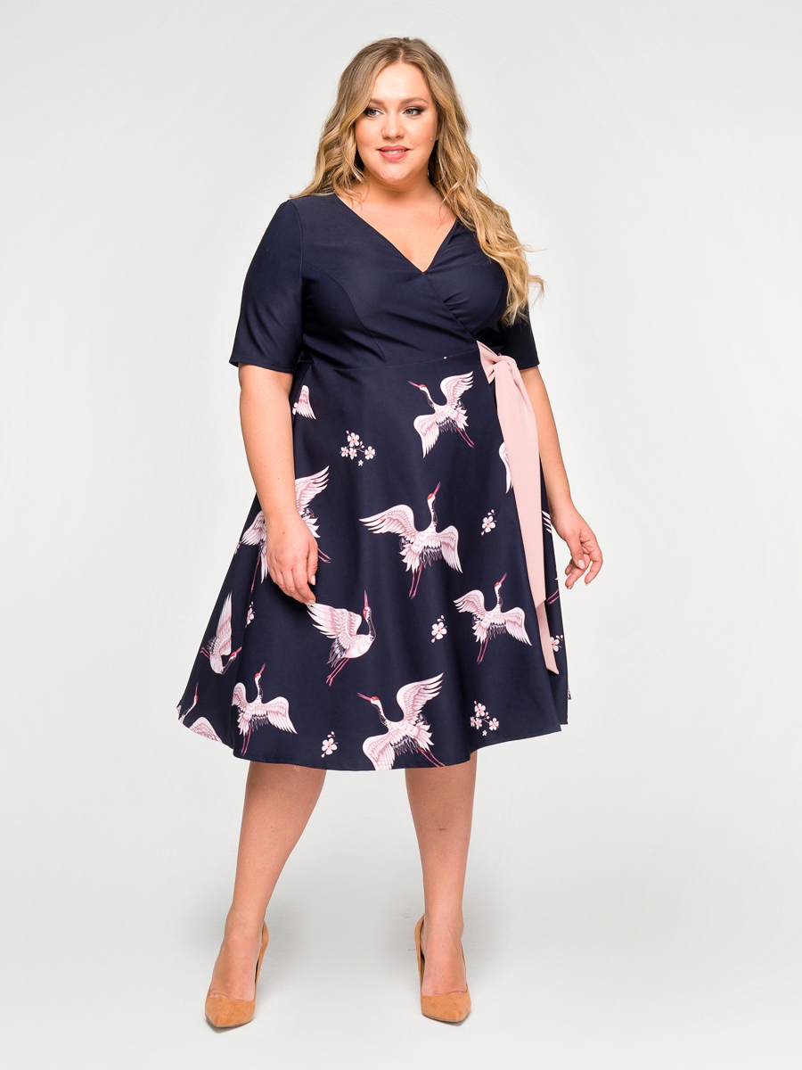 Элегантное летнее платье из крепа. Платье с запАхом выгодно подчеркивает зону декольте и будет актуально в качестве офисного наряда летом.