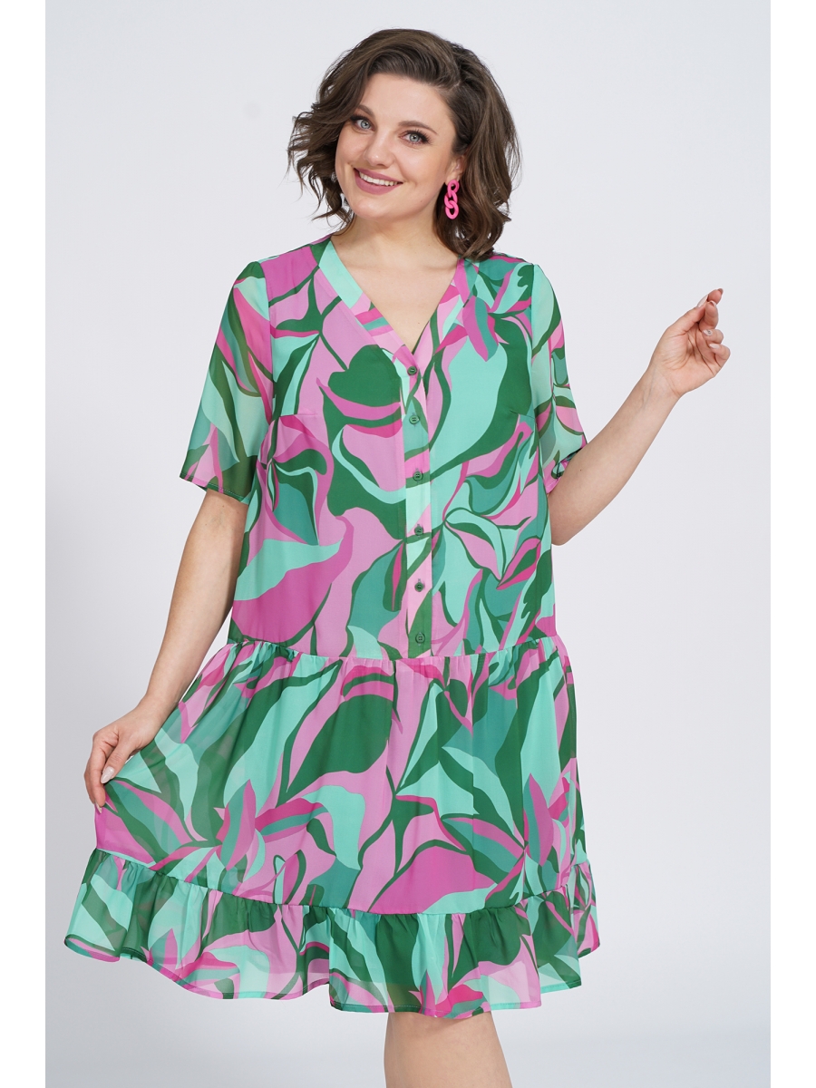 Оформить заказ →Платье женское силуэта А-образной формы, на подкладке, ниже линии талии, понизу с двумя притачными оборками разной ширины по шву соединения собраны на сборку. С застёжкой по притачной планке на петли и пуговицы. Перед с нагруными выточками. Рукава втачные, одношовные, короткие.