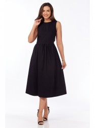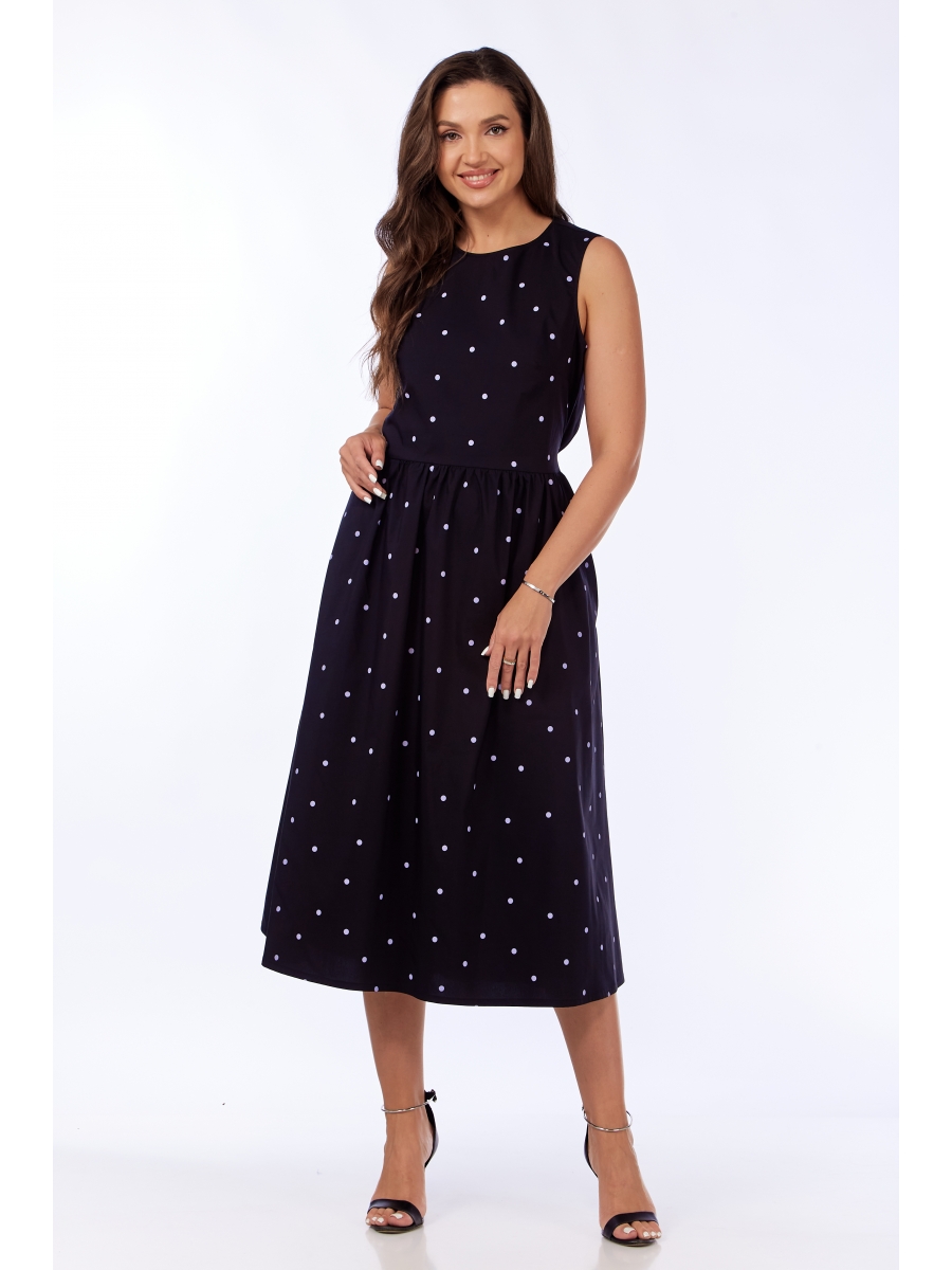 Летнее платье длины миди оригинального кроя. Изделие выполнено из натуральной хлопковой ткани. Лиф и спинка отрезные. Вырез горловины по переду круглый, по спинке - завязка из обтачных деталей спинки. Спинка открытая. Платье без рукава, низ платья - притачная юбка со сборкой, по спинке на резинке. Имеется два кармана в боковых швах. Платье может сочетаться как с кедами, босоножками, так и туфлями. Данная модель отличное решение для будней и для торжеств.