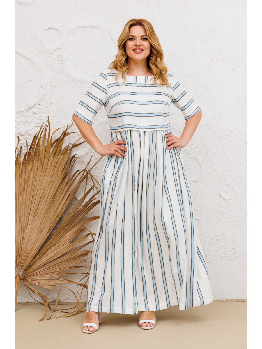 Актуальное летнее платье выполнено из тонкой, струящейся, приятной на ощупь вискозной ткани. Платье длиной в пол, имеет полуприлегающий силуэт. Верх изделия с завышенной талией и округлой горловиной, короткий втачной рукав, в боковых швах на нижней части платья (юбке) - карманы. Сзади плптье - на декоративной завязке.