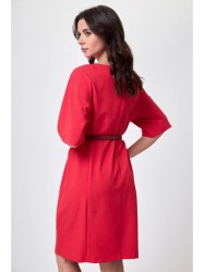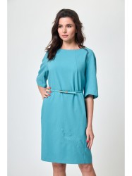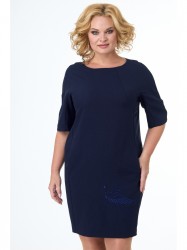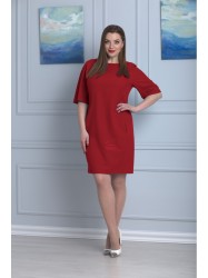 Платье прямого силуэта, по переду центральный шов, рельефы, переходящие в бочок. В рельефах рабочие карманы. Вырез горловины округлый. Пройма с притачной фигурной деталью. Спинка со средним швом и талевыми вытачками.