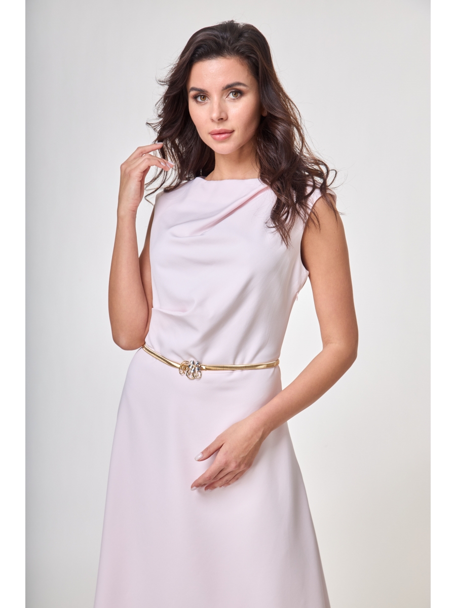 Платье приталенное, расширенное в низу, длинное. Горловина лодочка удачно подчеркнёт ваше лицо. А драпировка по переду придаст новизны классическому образу. В платье вы будете чувствовать себя увереннее и женственнее, а простота кроя даёт возможность играть с различными аксессуарами и создавать нужный вам образ!