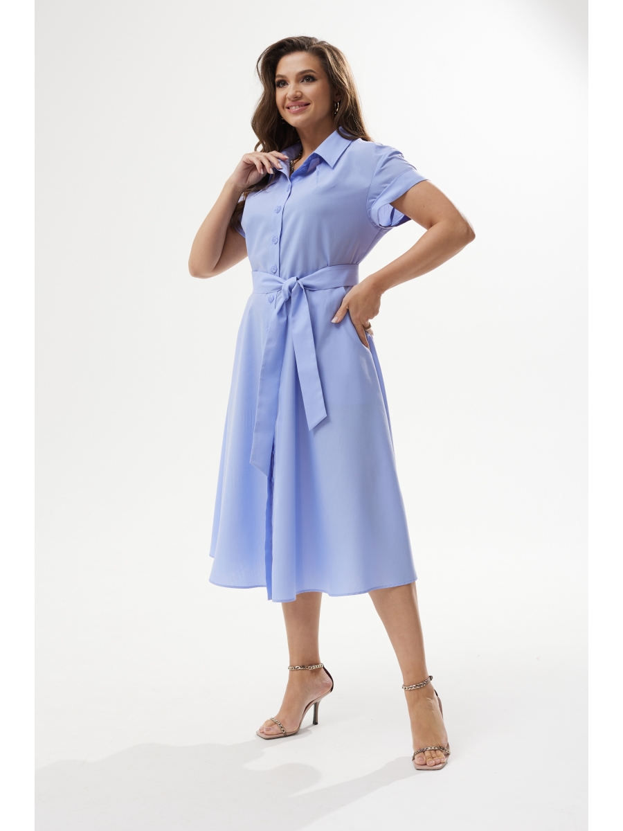 Оформить заказ →Платье полуприлегающего силуэта отрезное по линии талии с застежкой на пуговицы по переду. Спущенное плечо, кокетка по переду и по спинке, из-под кокетки спинки складки. По горловине 4 днкоративные вытачки. Воротник рубашечный с отрезной стойкой. Рукав рубашечный коротний с отложной манжетой. По переду юбки карманы с отрезным бочком. В комплекте пояс из основной ткани.