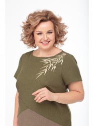 Полуприлегающий силуэт, перед разделён конструктивными линиями на геометрические детали, вырез горловины округлый, втачной короткий рукав.