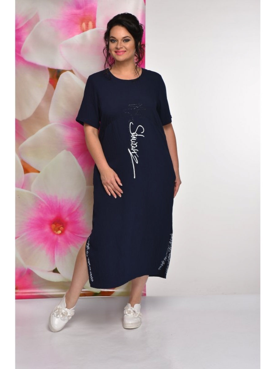 Оформить заказ →Стильное платье свободного прямого силуэта, слегка расширено к низу . Выполнено из комфортной ткани , которая имеет небольшой жатый эффект и не мнётся . По переду платье декорировано стразами и печатью,а спинка с кокеткой и с пришитой модной тесьмой с надписью . По бокам - разрезы , декорированные печатью. Горловина округлая . Рукав втачной.