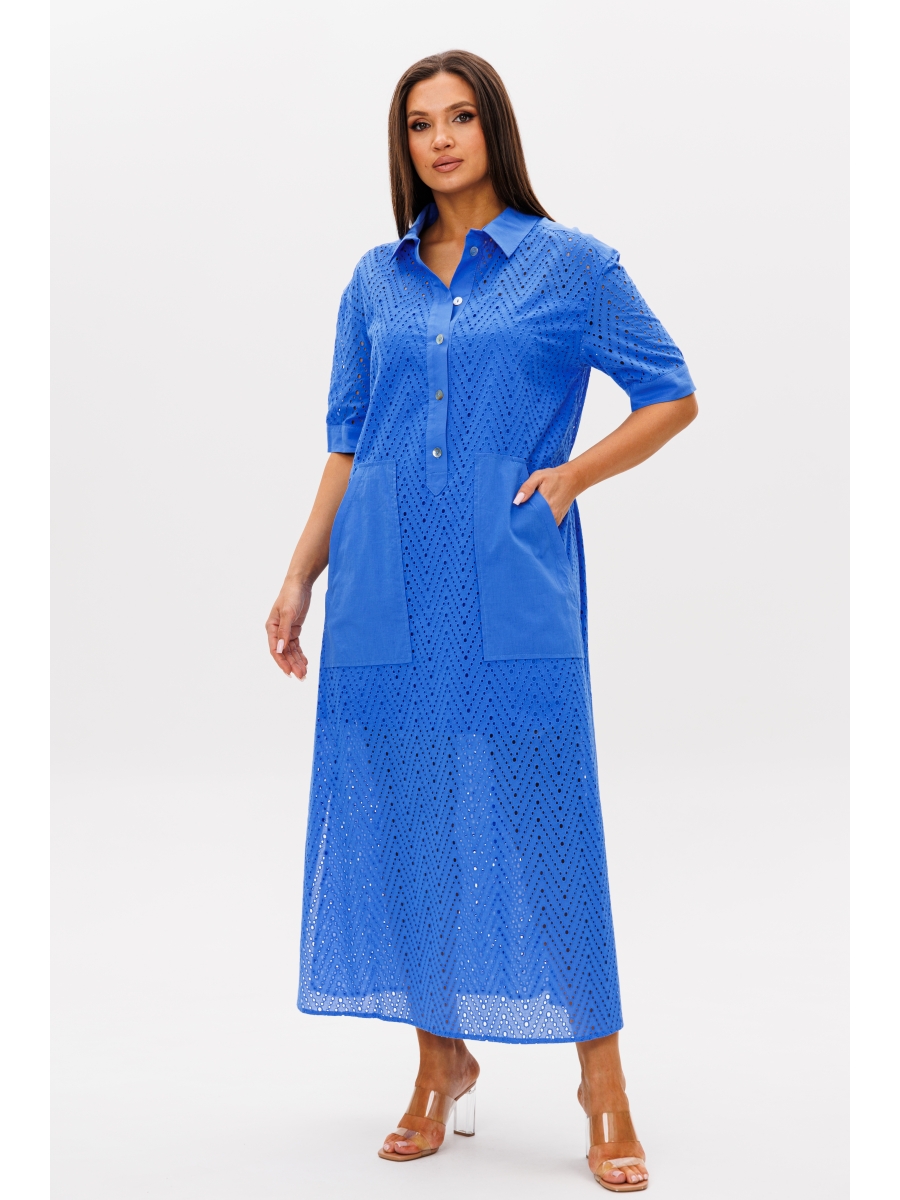 Оформить заказ →Платье свободного А-силуэта, рубашечного покроя с заниженной линией плеча, рубашечным воротником и рукавом. Полочка с частичной застежкой и накладными фигурными карманами. Спинка с отрезной кокеткой, средним швом и кулиса с регулирующейся тесьмой и фиксаторами по талии. Рукав с локтевой планкой и притачной манжетой с петлей и пуговицей. По боковым швам - разрезы. Все конструктивные элементы платья подчёркнуты контрастными отделочными строчками.