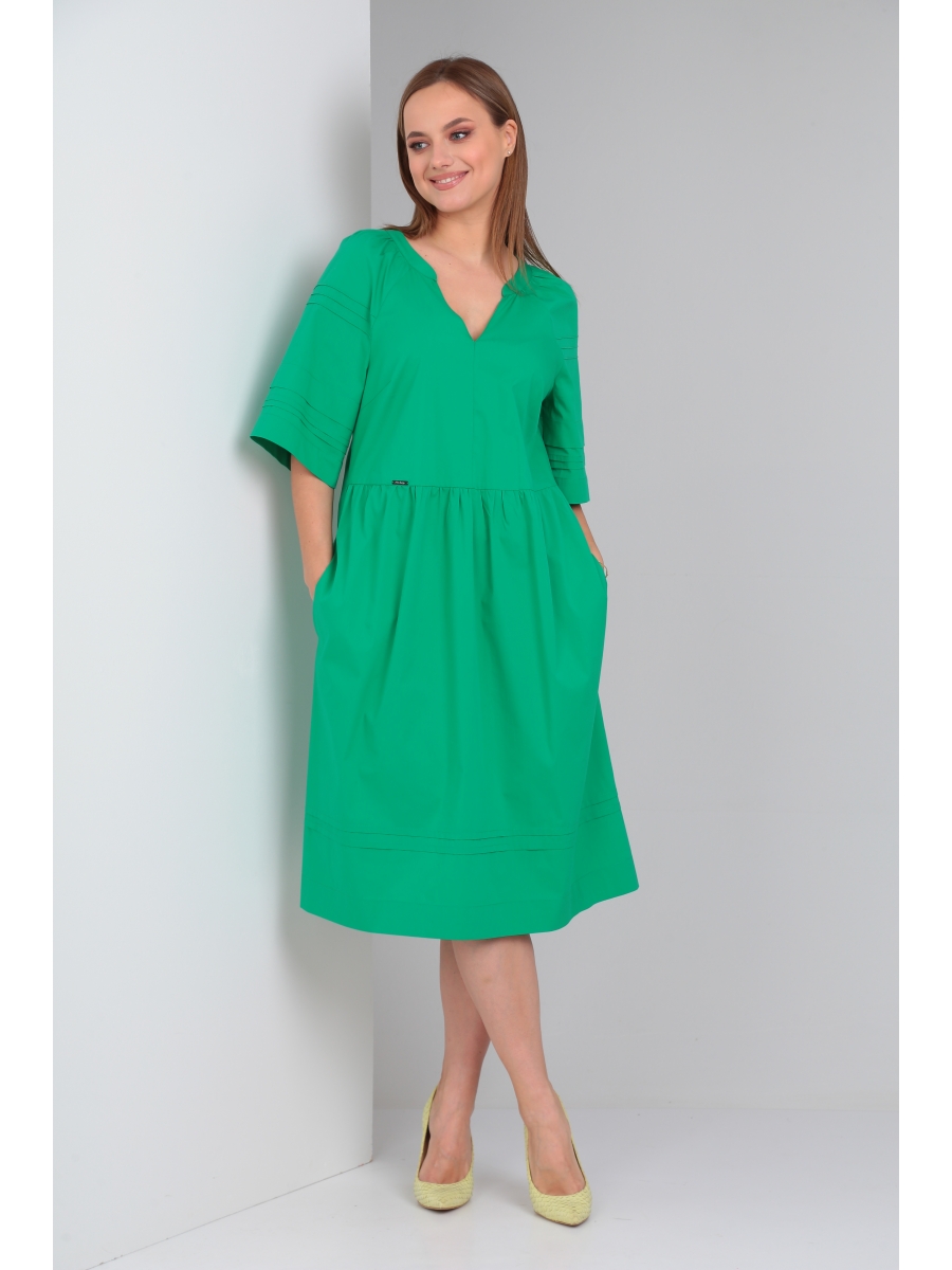Платье женское свободного покроя из однотонной хлопковой ткани.
