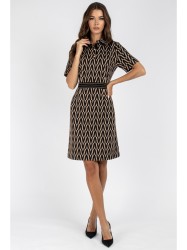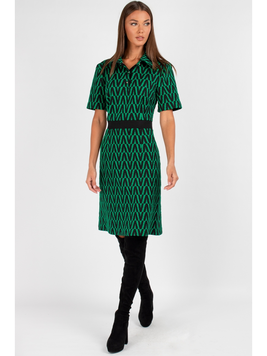 Платье женское полуприлегающего силуэта, отрезное по линиям талии. Линия талии с отделочной эластичной тесьмой. На полочке застежка на петли и пуговицы. Рукав втачной короткий.