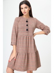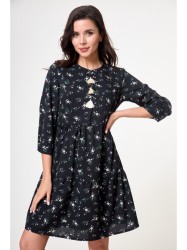 Центральная застежка на пуговицы, размещенная по лифу, не только функциональна, но и украшена прекрасными кисточками, создающими оригинальный акцент.