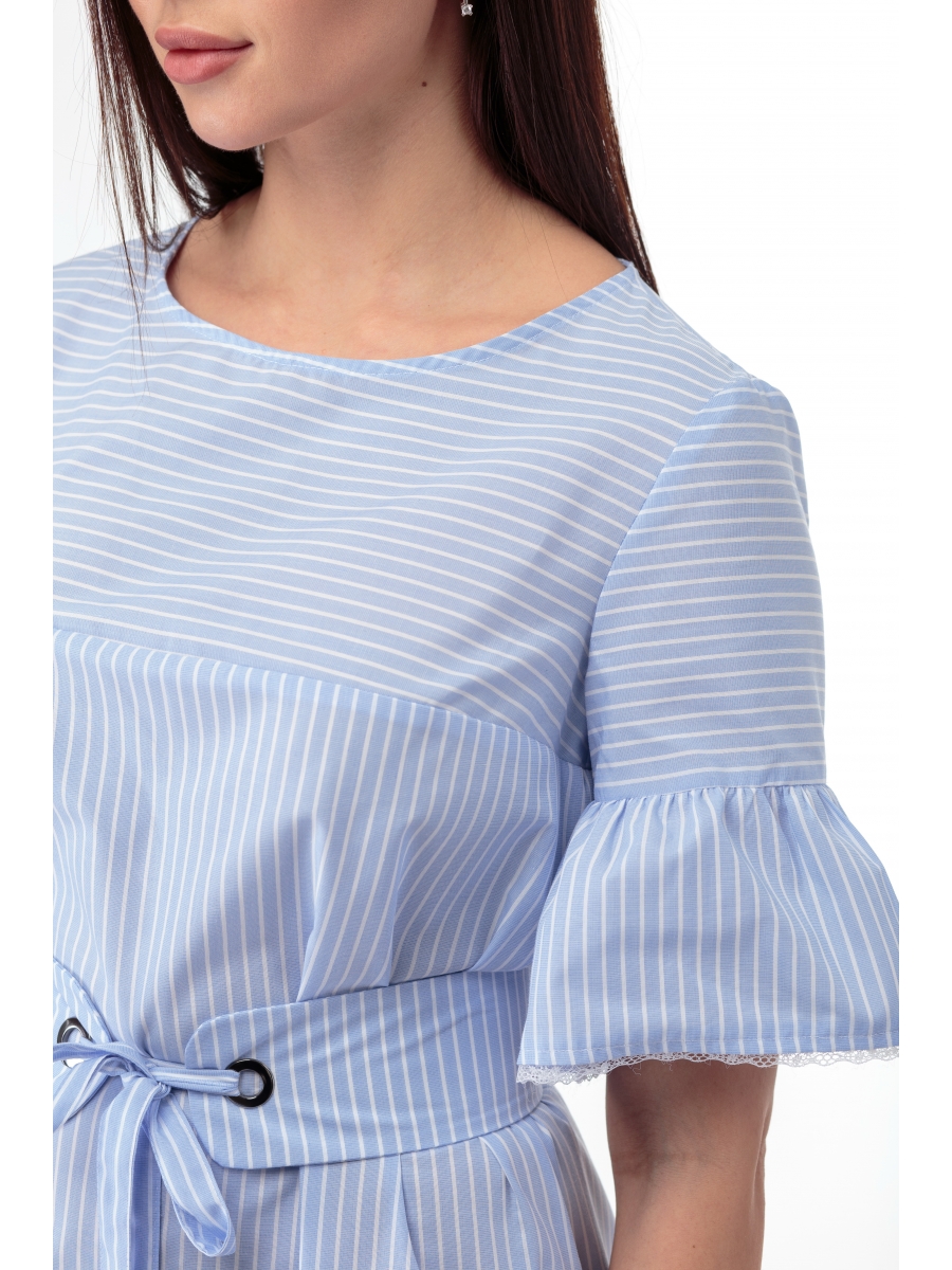 Платье из хлопковой ткани небесного цвета в полоску – актуально вне времени.