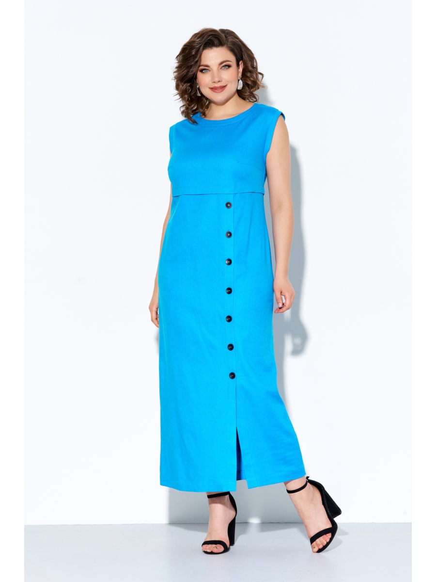 Летнее платье прямого силуэта с подрезом под грудью и декоративной планкой на петли и пуговицы, линия плеча которого немного спущено. Платье выполнено из натурального мягкого льна (не колется) с добавлением стрейча.