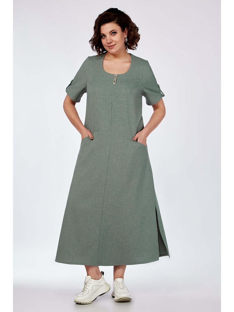 Комфортное платье А-силуэта из плательной ткани лен-вишер смотрится очень оригинально и интересно. Асимметричный перед со средним швом и диагональными подрезами вверху и в области бедер гармонично фрагментируют фигуру и наполняют образ легкостью. В боковых швах есть разрезы и функциональные карманы. Нагрудные вытачки создают прилегание в области груди. Спинка со средним швом, рукав короткий, с патой и пуговицей. Модель украшена изящной нашивкой. Платье идеально выручит Вас на любой случай.