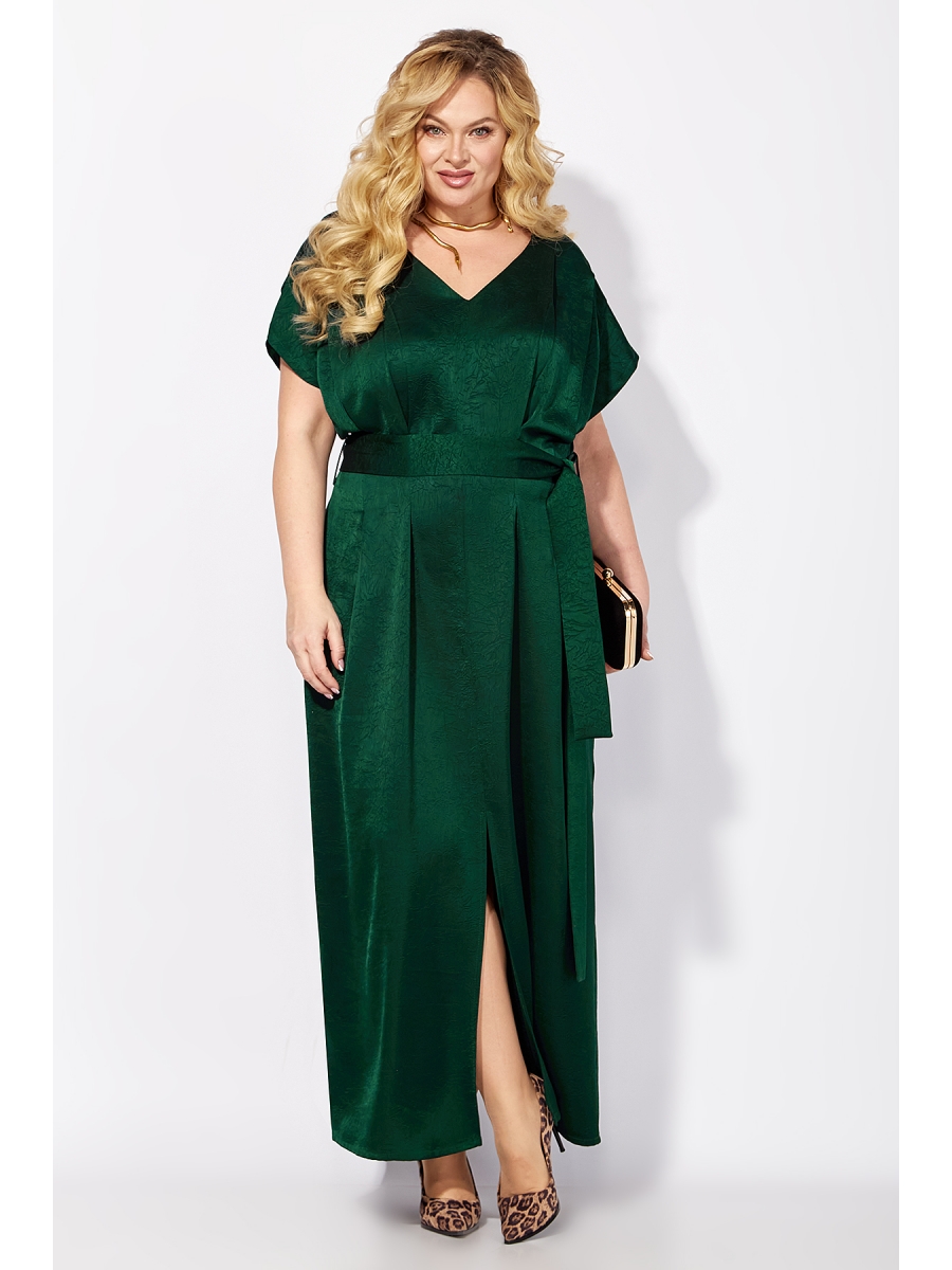 Однотонное элегантное платье выполнено из ткани премиального качества атласной, крэшованной фактуры, имеющей небольшой благородный блеск. Шелковистый материал придает наряду особый шик, а также делает его приятным к телу. Материал имеет среднюю плотность, поэтому красиво струится. Он не просвечивает, что позволяет использовать его без подкладки. Это гарантирует комфортное ощущение. Эта трендовая вещь, новинка сезона 2025, станет свидетельством отличного вкуса и осведомленности в модных тенденциях. Лекало свободного кроя, выверенное нашими опытными конструкторами, создает роскошный силуэт и скрывает проблемные места. Драпировка и пояс позволяют корректировать степень приталенности по желанию. Вырез на груди визуально удлиняет шею. Сексуальный разрез на юбке спереди и сзади визуально удлиняет ноги и придает образу пикантность. Рукав спущенный с драпировкой по плечевому срезу. Наряд отлично подойдет на любой праздник и особый случай, для торжественных мероприятий, свадеб и юбилеев. Это прекрасный вариант на роспись в ЗАГС и для мамы на свадьбу или выпускной. Его можно носить как на выход, так и в повседневной жизни, создавая стильный и модный образ. Универсальность этой модели делает его идеальным как для офиса, так и для вечеринок и коктейлей.