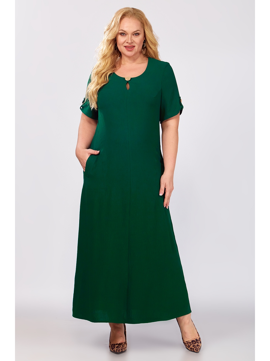 Летнее, удобное, стильное, красивое и легкое платье прямого силуэта, расширенного к низу. Выполненное из качественного, не мнущегося и очень приятного к телу материала, платье отлично сядет на фигуру. На передней полочке - вставки, на которых обработаны прорезные карманы с листочкой и декоративной нашивкой. Нагрудная вытачка из проймы переда, капелька по среднему шву полочки, которая декорирована пуговицей. В боковых швах -  разрезы. Спинка со средним швом. Рукав короткий, с патой на петлю и пуговицу. Шикарно смотрится как с туфлями на каблуке, так и с кедами.  Простое в уходе, универсальное, базовое платье больших размеров неоднократно порадует вас!
