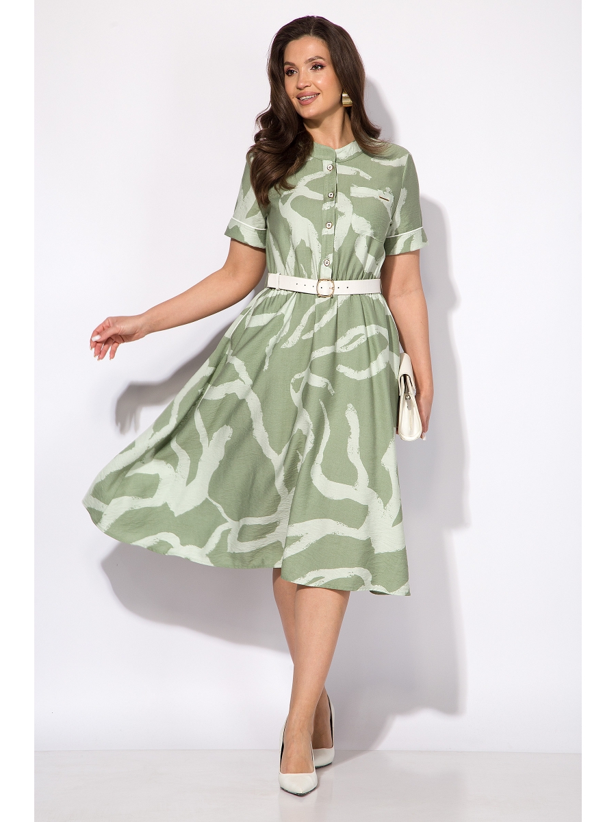 Летящее весенне-летнее платье с коротким рукавом, отрезное по талии. Пышная юбка полу солнце и создает по-девичьи трогательный и мечтательный образ. Застежка с обработанными планками на петли и пуговицы до линии талии. На лифе расположен ассиметричный накладной карман. Вырез горловины округлый, на плоско лежащей стойке. Платье с карманами. По линии талии предусмотрена резинка для комфортного прилегания. В комплекте пояс из эко-кожи в тон изделия.