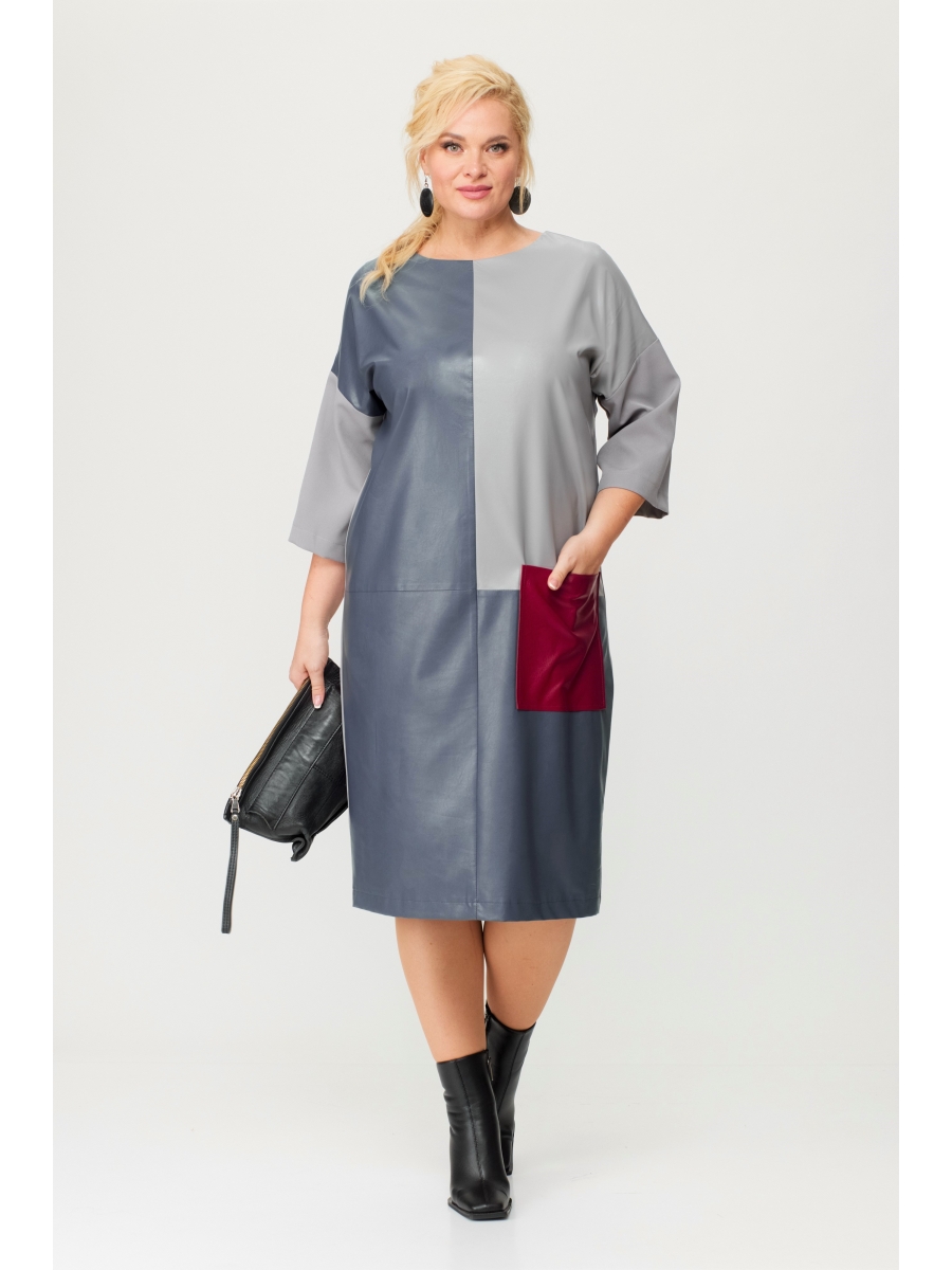 Оформить заказ →Платье женское из двух видов ткани (спинка и рукав - текстильная ткань, полочка-эко-кожа). Платье прямого силуэта длиной за колено. Перед разрезной (из двух цветов кожи) с накладным карманом. Спинка со средним швом, застежка на потайную молнию, в низу разрез, горловина овальной формы. Рукав со спущенным плечом.