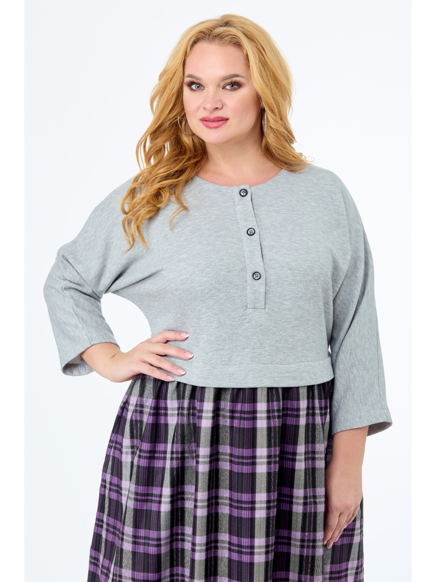 Платье выполнено в сочетании полотен разных фактур.Верхняя часть-мягкий трикотаж,нижняя часть платья-смесовая ткань с принтом.