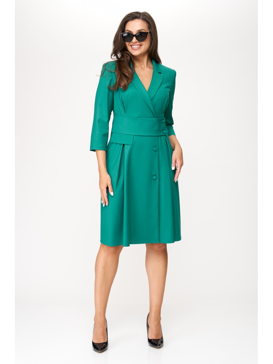 Оформить заказ →Платье полуприлегающего силуэта с воротником рубашечного типа. Рукав 3/4 втачной одношовный. Затежка на 4 пуговицы. Пояс втачной с застежкой на пуговицы. По переду и низу лифа складки.