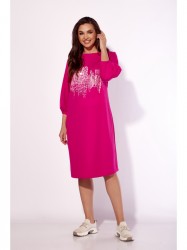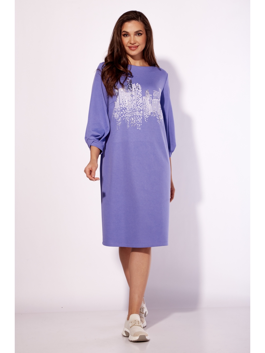 Оформить заказ →Платье женское прямого силуэта с рукавом длиной 3/4. Рукав втачной. По низу рукав объемный, типа фонарик оформлен манжетой фигурной формы с мягкими складками. Вырез горловины круглой формы (лодочка) по спинке обработан отрезной планкой , переходящим на перед по плечевым швам. По переду нагрудные вытачки. По центру декор. Спинка без особенностей.